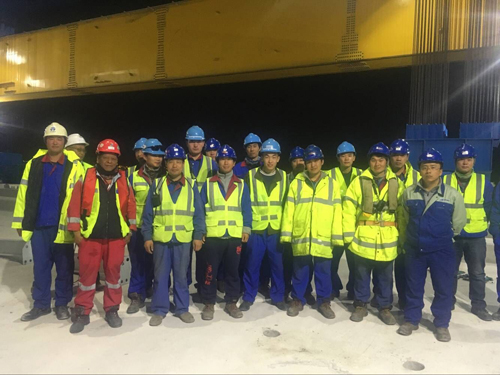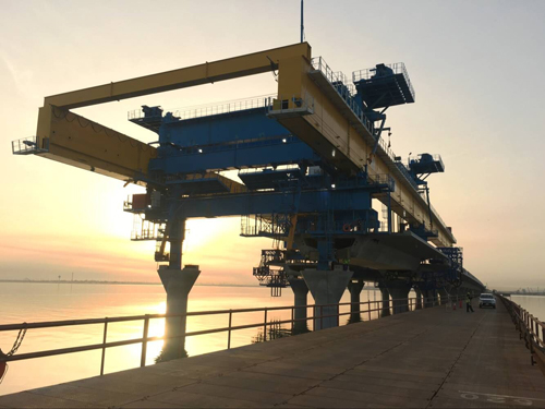 施工現場實況:科威特-GS Doha-link,天業通聯不僅向GS Doha-link項目提供了一整套的1700t FSLM 設備,而且積極深入的參與到了現場的橋梁施工作業當中。截止到2016年12月29日,由天業通聯提供的1700t 運架提設備,圓滿完成2016年架梁任務,累計架設完成混凝土箱梁56孔共計112片。