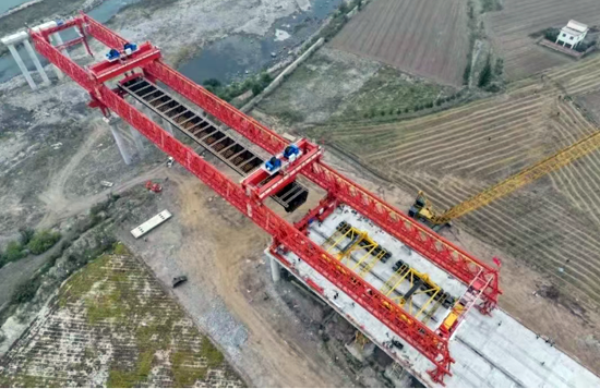 Publication Date:2025-05-27On May 27th, the LG450T80M Launching Gantry finished the installation of totally 22pcs of steel-concrete composite girders for the Qinhe Grand Bridge on the Jiaozuo-Jiyuan section of the Yan-Taihang Expressway.